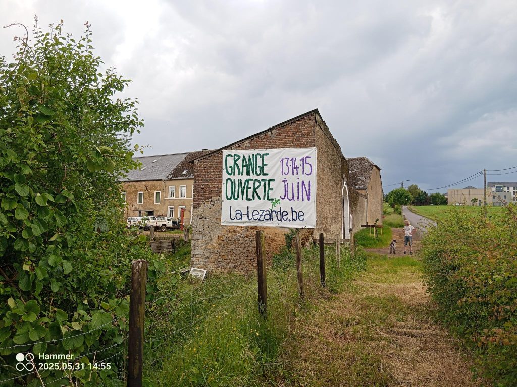 Ces jours-ci, malgré une météo un peu capricieuse, nous avons fixé trois bannières sur la ferme, en pensant aussi à celles et ceux qui prennent le train. Pour les Arlonai-se-s, plus moyen d’ignorer le rendez-vous « Grange ouverte » des 13-14-15 juin..